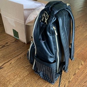 Itzy ritzy boss backpack diaper bag herringbone black back pack new mom gift.